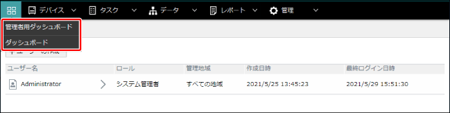 > [管理者用ダッシュボード]または[ダッシュボード]を選択します。