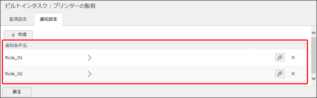 [通知条件] | 設定した条件が表示されます。 通知条件を削除したい場合は、条件の右端にある[ ]をクリックします。 |