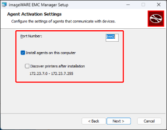 When installing the Agent to the same computer as the Manager, select the [Discover printers after installation] check box to automatically discover printers after installation.
