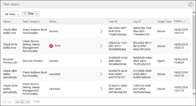 The execution results of the following built-in tasks are not displayed in the list. Monitor Printers Retrieve Printer Information Retrieve Counter Information |