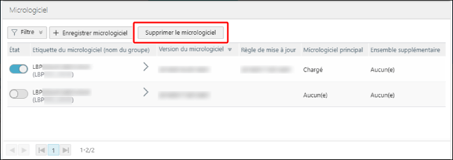 Sélectionnez le micrologiciel à supprimer, puis cliquez sur [Supprimer].