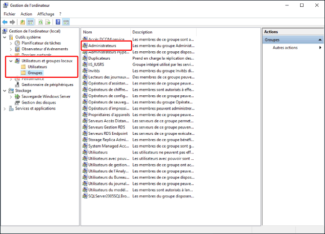 Dans [Utilisateurs et groupes locaux] > [Groupes], double-cliquez sur [Administrateurs].