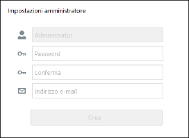 In [Password] e [Conferma], inserire la stringa da utilizzare come password per l'Amministratore.