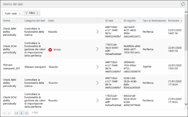 Le periferiche e gli Agent in cui l'esecuzione del task ha avuto esito negativo sono le destinazioni di un task di recupero. |