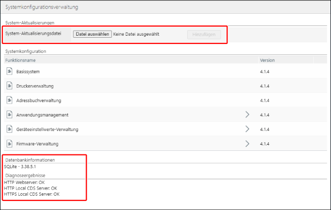 Name und Version der hinzugefügten Funktionen werden auf der Seite [Systemkonfigurationsverwaltung] angezeigt.
