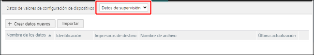 En la página [Datos de valores de configuración de dispositivos], haga clic en [Crear datos nuevos].