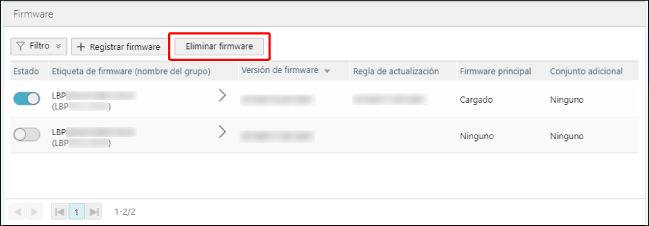 Seleccione el firmware para eliminar y haga clic en [Eliminar].