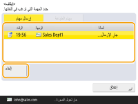 (إيقاف) في لوحة التحكم أثناء معالجة إحدى مهام الإرسال/الطباعة وعرض الشاشة <فاكس>/<مسح ضوئي وإرسال>، فسيتم عرض شاشة منبثقة تقوم بإلغاء المهمة الجارية مباشرةً. عند معالجة عدة مهام، يُمكنك تحديد المهمة التي تريد إلغاءها: آخر مهمة تم القيام بها، أو المهمة التي في مرحلة الإرسال. (<المهمة التي سيتم إلغاؤها عند الضغط على توقف>)في حالة تشغيل مهمة بعد الضغط على