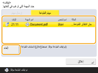 (إيقاف) في لوحة التحكم أثناء معالجة إحدى مهام الإرسال/الطباعة وعرض شاشة تؤدي إلى <إرسال مهام>/<مهام الطباعة>، فستتوقف مهمة الإرسال/الطباعة الجارية بشكل مؤقت، ويتم عرض <إرسال مهام>/<مهام الطباعة>.