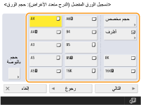 إذا قمت بتسجيل حجم الورق الذي تستخدمه بشكل متكرر على الأزرار <S1> إلى <S4>، فيمكنك استدعاؤه بلمسة واحدة. تسجيل ورق بحجم حر (ورق بحجم مخصص)