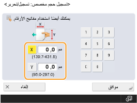 حدد طول الوجه <X> والوجه <Y>. اضغط على <X> أو <Y> لإدخال طول كل جانب باستخدام مفاتيح الأرقام.