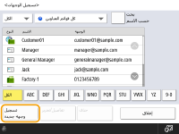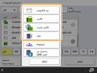 العمليات الأساسية لإرسال الفاكسات<دليل العناوين> في شاشة الميزات الأساسية للمسح الضوئي