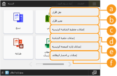 <تقييد عرض الوظائف>: حدد الوظائف أو تطبيقات MEAP لإخفائها من على الشاشة <الرئيسية>.