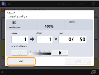 (إيقاف) في لوحة التحكم أثناء عرض شاشة ميزات النسخ الأساسية، يتم إيقاف مهمة النسخ مؤقتًا، ويتم عرض رسالة <إيقافحدد مهمة النسخ التي ترغب في إلغائها.> وقائمة مهام النسخ. يمكنك تحديد مهمة التصوير من القائمة وإلغاء مهمة التصوير بالضغط على <إلغاء>.إذا سجلت الدخول بإدارة المصادقة الشخصية وسجلت الخروج بعد الضغط على
