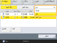 (إيقاف) في لوحة التحكم أثناء انتظار مهام النسخ، يتم إيقاف مهام النسخ مؤقتًا ويتم عرض رسالة <إيقافحدد مهمة النسخ التي ترغب في إلغائها.> وقائمة مهام النسخ. يمكنك تحديد مهمة تصوير من القائمة وإلغاء مهمة التصوير بالضغط على <إلغاء>. إذا كنت تريد استئناف النسخ، فاضغط على <استئناف النسخ>. |