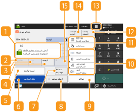 يعرض حالة الإعداد مثل الدقة. احرص على تأكيد الإعدادات للمسح الضوئي بصورة صحيحة. لتغيير الإعدادات، اضغط على الزر المطلوب. العمليات الأساسية لإرسال الفاكسات