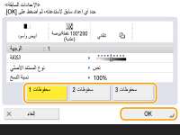 يُمكنك تخزين سلسلة من الوجهات أو إجراء المسح الضوئي أو إرسال الإعدادات المحددة قبل الضغط على  (بدء) كمجموعة واحدة من الإعدادات السابقة.