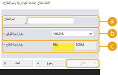 (الإعدادات/التسجيل) <إعدادات الإدارة> <إدارة الجهاز> <إعدادات الشهادة> <قائمة المفتاح والشهادة>. إذا لم يتم عرض قائمة المفاتيح والشهادات، فاضغط على <قائمة المفتاح والشهادة لهذا الجهاز> لعرضها.إذا تم عرض