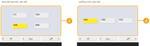 إدارة المفاتيح والشهاداتيُمكنك التحقق من الإعدادات التفصيلية أو حذف المفاتيح والشهادات على الشاشة التي يتم عرضها عند الضغط على