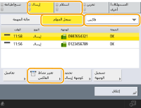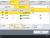 بالنسبة للمستندات التي تم إرسالها عبر البريد الإلكتروني، فإنَّ القائمة تشير إلى نتائج الإرسال الذي يتم بين الجهاز وخادم البريد، وليس بين الجهاز والوجهة.