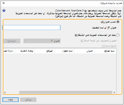 انقر فوق [تحديد عنوان] وأدخل عنوان IP أو اسم المضيف للجهاز في مربع النص [عنوان IP أو اسم المضيف].