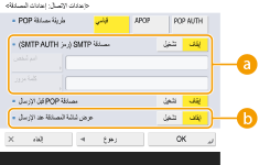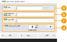 عند تحديد [POP Password] على Remote UI (واجهة المستخدم عن بُعد)، وإذا كنت تريد تغيير عنوان الخادم وتسجيله في [POP Server]، فمن الضروري إدخال كلمة المرور في [POP Password].
