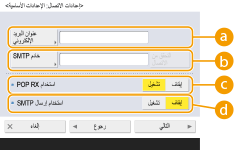 اضغط على <تشغيل> عندما ترغب في جعل الجهاز خادم SMTP لاستلام رسائل البريد الإلكتروني وفاكسات الإنترنت. اعلم أنه يتعذر عليك الاستلام عن طريق SMTP إذا لم تسجل اسم المضيف للجهاز في خادم DNS.