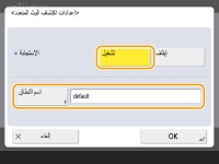 يمثل PASV وضع اتصال FTP الذي يُستخدم أثناء نقل الملفات. اضغط على <تشغيل> لهذا الإعداد لتمكين الجهاز من الاتصال بخادم FTP حتى إذا كان الجهاز ضمن جدار حماية. تأكد مسبقًا من تعيين وضع PASV في جانب خادم FTP.