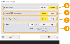 عند ضبط <يلزم التشفير للاتصال> على <تشغيل>، لا يتصل الجهاز إلا بخوادم SMB التي تدعم اتصال SMB 3.0/3.1 المشفر. عند ضبط <1.0> و<2.0> على <تشغيل> لـ <تحديد إصدار عميل SMB> ولكن <3.0> ليست مضبوطة على <تشغيل>، يتعذر اتصال الجهاز بخوادم SMB التي لا تدعم اتصال SMB 3.0 المشفر.