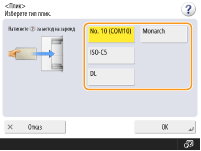 бутона, в който сте регистрирали типа хартия "Плик" <OK>. Регистриране на често използван формат и тип на хартията в многофункционалната тава |