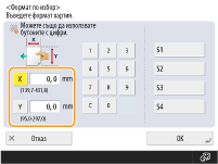 Ако запаметите често използвани от вас формати хартия в бутони от <S1> до <S4>, можете да ги извикате с едно докосване. Регистриране на хартия със свободен формат (хартия с потребителски формат)