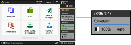 Ако <Управл. на кодове за достъп до Адр. книга> е с настройка <Вкл.>, регистърът на изпратените задачи ("Факс" и "Сканиране и изпращане") за неудостоверени потребители и потребители гости не се показва в хронологията.