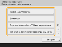 Редът, размерът и броят на бутоните, показвани в екрана <Начало>, могат да се променят, както и фоновото изображение. <Настройки за управление на начален екран> ви позволяват да конфигурирате настройките за показване на хронологията и да показвате/скривате функционалните бутони.
