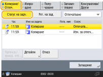 Натиснете <Копиране/Отпечатване>  <Статус на задч.>.