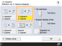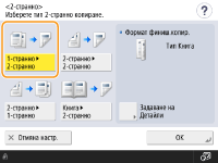 Когато екранът за избор на формат на оригинала се покажеАко <Избор на хартия> е зададено на <Авто>, екранът за избиране на формат на оригинала може да се покаже. Това се показва, защото форматът на оригинала не може да се потвърди и хартията не може да се избере автоматично, когато се поставят силно прозрачни оригинали, оригинали с изключително тъмен основен цвят или оригинали с малък формат. Изберете формата на оригинала или формат, близък до оригинала.