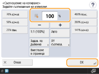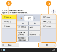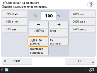 Можете да увеличавате или намалявате чрез задаване на съотношение на копиране (%). Можете да задавате поотделно вертикално и хоризонтално съотношение.