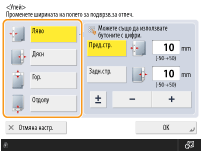 Когато границата се задава, изображенията се преместват с ширината на границата и се копират. Оригинал, чието изображение се разширява до ръбовете на листа, може да се отреже частично върху копието.