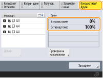 Можете да проверите и оставащо количество консумативи от Remote UI (Потребителски интерфейс за отдалечено управление). Проверка на състоянието на машината