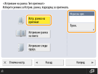 Ако размерът, показан в <Формат оригин.>, е различен от размера на оригинала, натиснете <Промяна> за избиране на размера. Можете да задавате режим за изтриване на рамка на оригинал само за оригинали с форматите, показани на дисплея на сензорния панел.