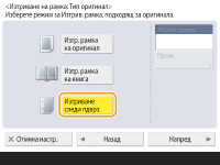 Ако искате да регулирате ширината за всяка граница независимо, натиснете <Изтр. рамка на оригинал> или <Изтр. рамка на книга>