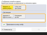 Натиснете <Настройки>  <Съобщение край задача>.