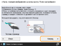 Проверете степента на изместване на изображението върху отпечатаната тестова страница и регулирайте позицията на печат.
