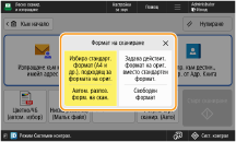 Ако сканирате оригинали със свободен формат/силно прозрачни или ако краят на изображението липсва при сканиране, трябва да зададете ръчно формат на сканиране.