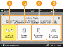 Регистриране на често използвани настройкиМожете да комбинирате често използваните дестинации и настройките за сканиране в един бутон на машината за по-късна употреба. Чрез натискане на регистрирания бутон при сканиране на оригинали можете бързо да завършите настройките си. Регистриране на комбинация от често използвани функции