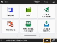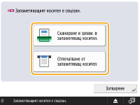 Ако <Избор на опция при свързване на запамет. носител> е зададено на <Вкл.>, се показват клавишни комбинации за наличните функции, когато поставите запаметяващ носител. <Избор на опция при свързване на запамет. носител>