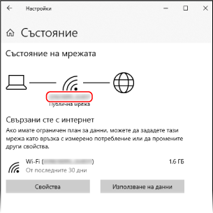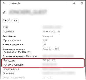 В [Свойства] вижте IP адреса и DNS сървъра.