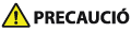 Indica que s'ha de tenir precaució per evitar riscs de lesions personals o danys en la propietat diferents a un error del producte a causa d'un ús inadequat de l'equip. Per assegurar-vos que feu servir l'equip de manera segura, feu cas sempre d'aquestes precaucions.
