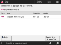 Pantalla de selecció d'emmagatzematge
