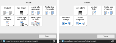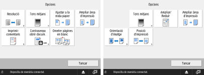 Pantalla d'opcions d'impressió