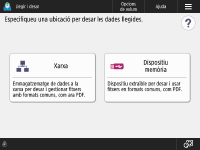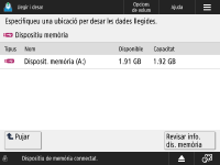 Pantalla de selecció d'emmagatzematge